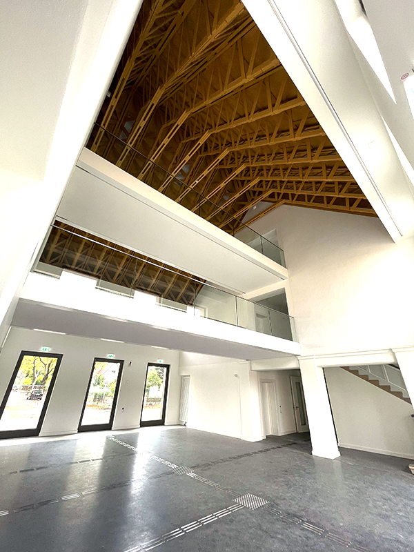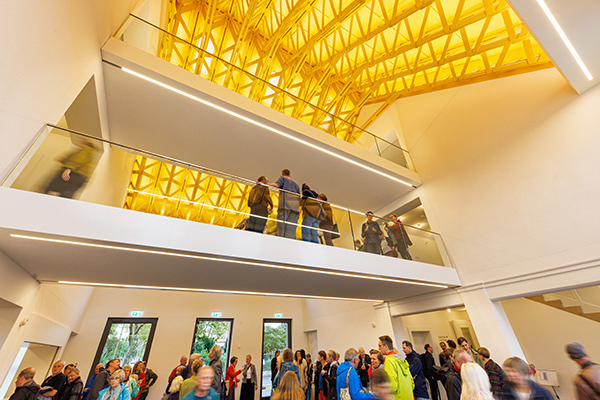 Nach reichlich vier Jahren Bauzeit konnten der sogenannte „Kleine Saal“, eine Probebühne und die Gästewohnungen für Künstler besichtigt werden. Ein Highlight des Ostflügels ist auch das sehr großzügig gestaltete Foyer. Hier gingen alle Blicke der Besucher sofort nach oben, und viele staunten über den frei sichtbaren „Ludwig-Kroher-Dachstuhl“, der weitestgehend im Originalzustand erhalten geblieben ist.
