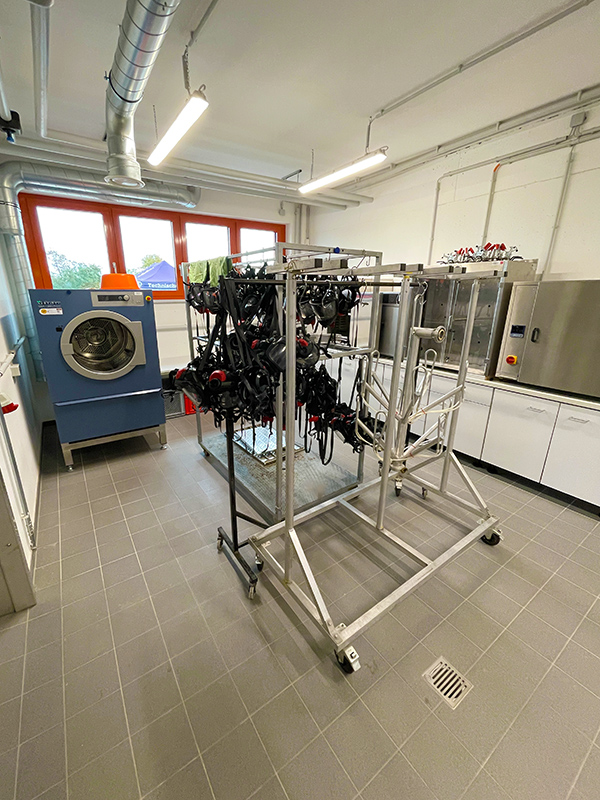 Der Neubau präsentiert sich mit einer modernen Fahrzeug- und Lagerhalle und Werkstätten zur Pflege von Schläuchen und Atemschutzgeräten. Dazu kommen großzügige Sanitär-, Umkleide- und Schulungsräume. Auf dem ZBK-Gelände ist jetzt auch der Katastrophenschutzeinsatzzug zu finden und eine sinnvolle lokale Kombination. Ein Highlight in der Anlage ist eine Käfigstrecke. Hier können sich Kameradinnen und Kameraden der vorwiegend Freiwilligen Feuerwehren unter brandtypischen Simulationsbedingungen (Rauch, Dunkelheit und Hitze) durchkämpfen und für das Tragen von Atemschutzgeräten qualifizieren.