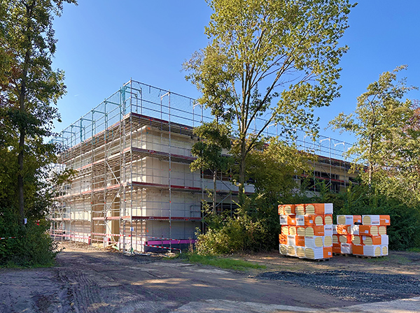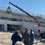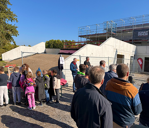 Ein weiterer Meilenstein wurde auf der Baustelle in Osthofen erreicht und am ersten Oktobertag bei bestem Wetter gefeiert: Der Rohbau ist abgeschlossen und auch die Dächer auf beiden Gebäuden fertiggestellt. Damit ist nach gut einem Jahr Bauzeit schon die Hälfte geschafft.